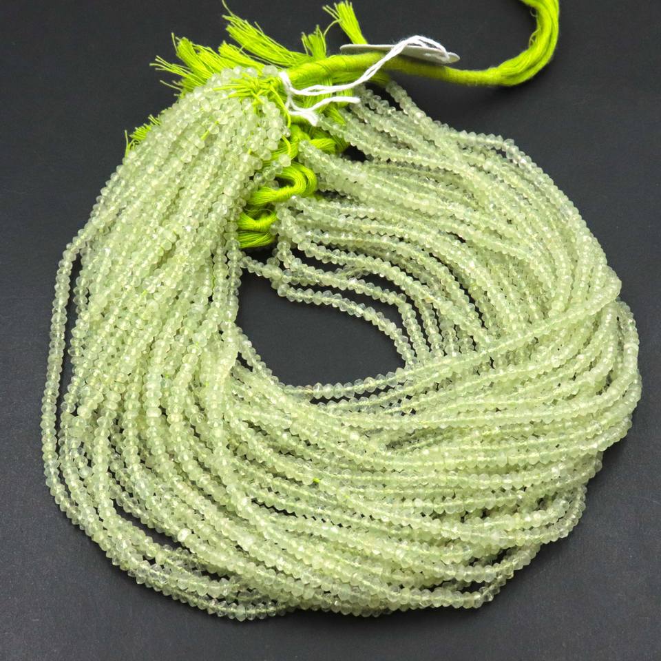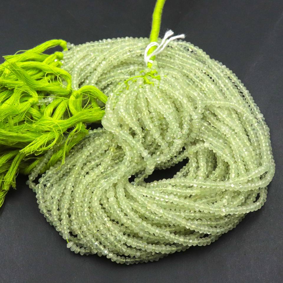 Perles de pierre précieuse naturelle de préhnite facettées en forme de rondelle, vertes, à percer, pour la fabrication de bijoux, colliers, 4,4-4,5 mm - Vente chaude