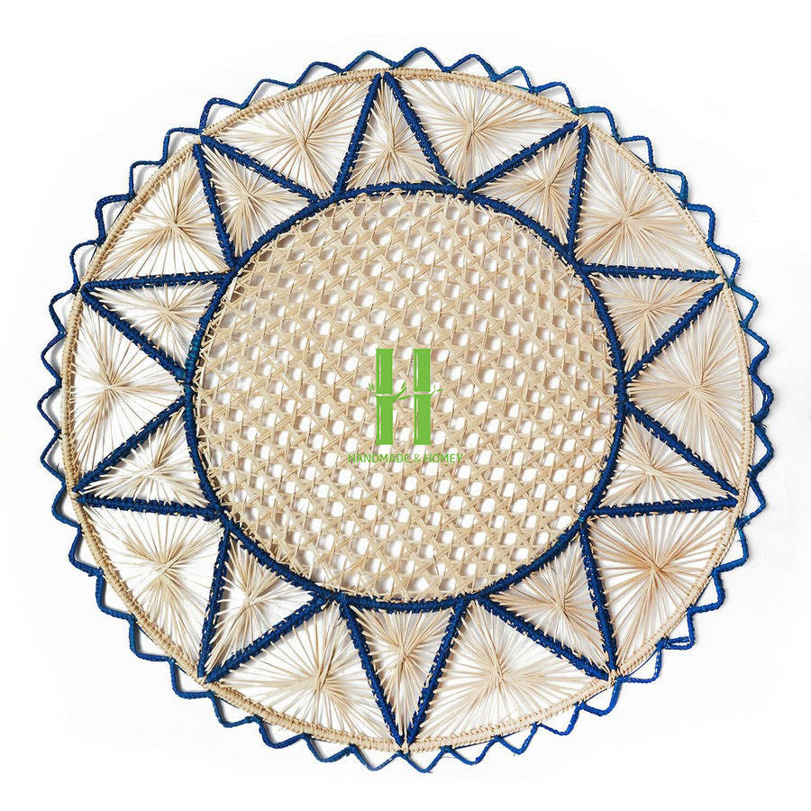 Assiettes de chargeur en rotin naturel de vente chaude personnaliser les tailles variété de couleurs napperon en rotin fait à la main pour décor de table HNH artisanat