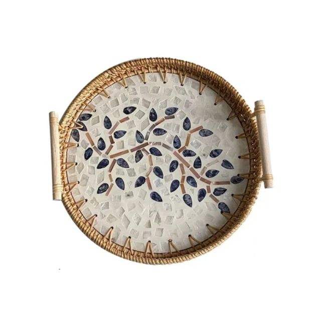 Plateau de service en rotin MOP avec poignée en boisNom du produit