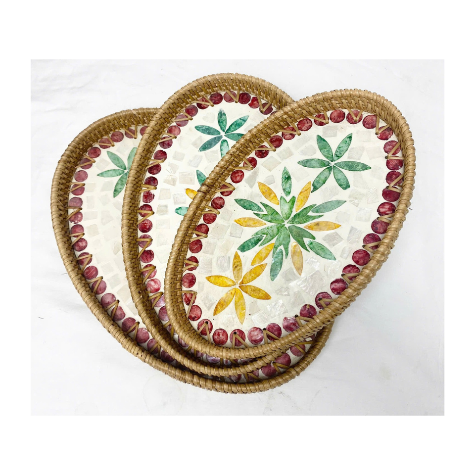 Plateau de service en rotin naturel de vente chaude plateau d'incrustation de nacre fabriquée de bonne qualité