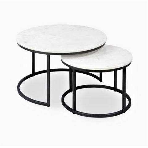 Ensemble de tables gigognes très prisé, deux tables en verre marbré or et blanc, plateau en verre marbré pour la décoration intérieure, table basse en métal