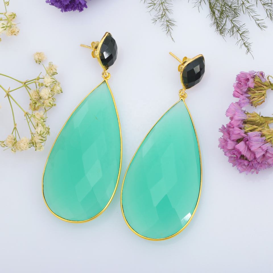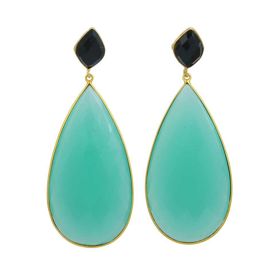 Vente chaude Nouvelle Arrivée Conception À La Mode Onyx Noir et Pierres Aqua Boucles D'oreilles En Argent Sterling 925