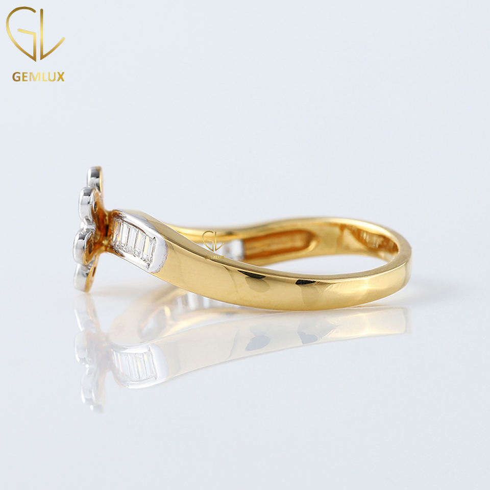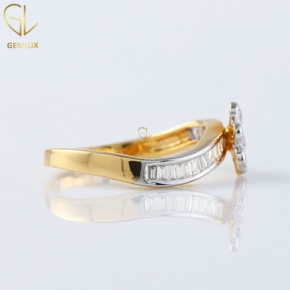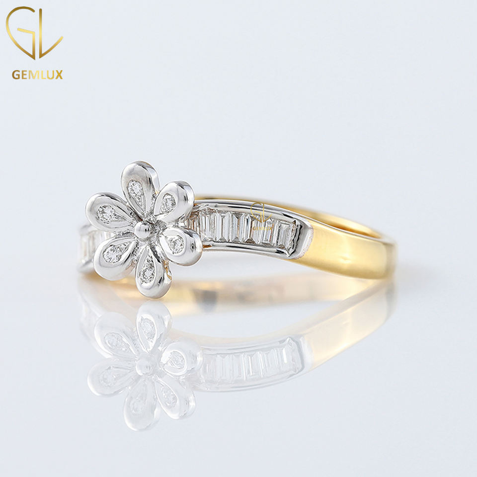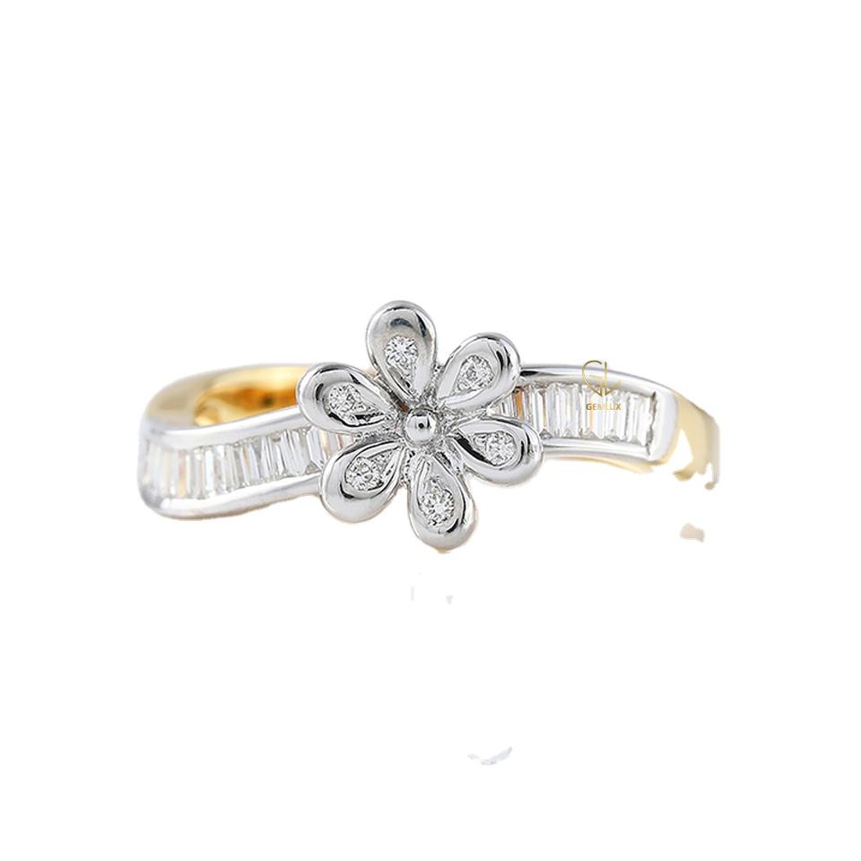 Vente chaude Nouvelle Bague Tourbillon Design, Bague de Fiançailles Moissanite Fleur Ronde et Coupe Baguette, Bague Diamant Deux Tons