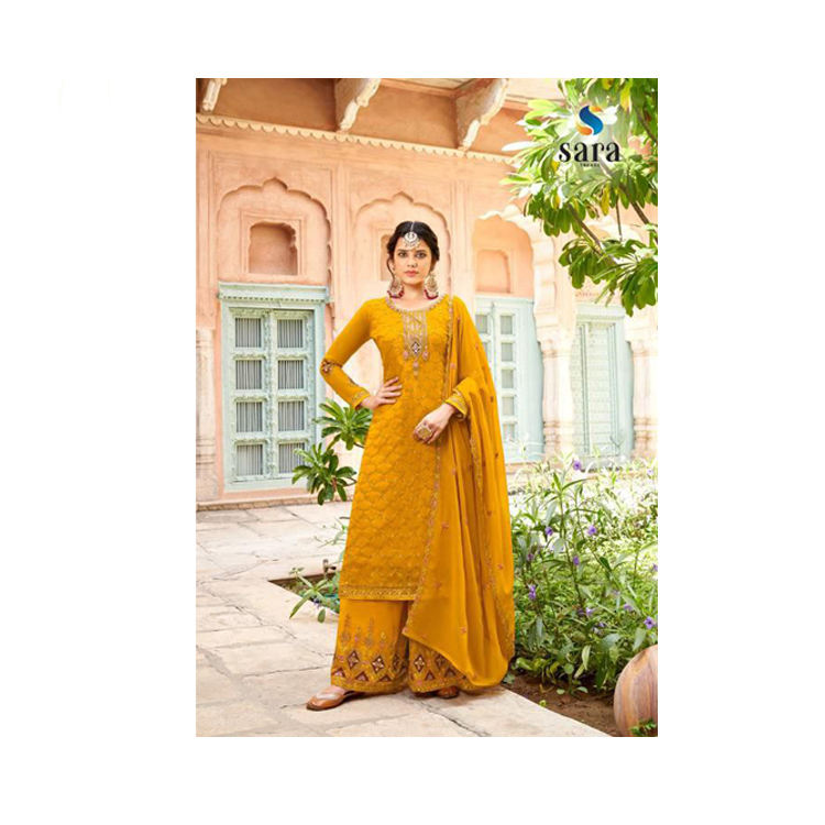 Vente chaude Nouveau Designer Georgette avec Broderie Travail Kurti Plazzo Set Collection de Véritable Fabricant Indien