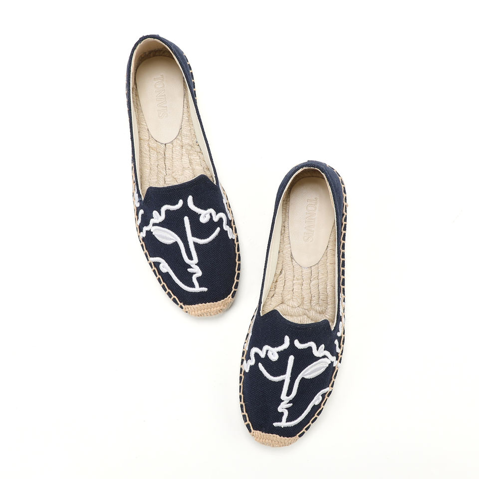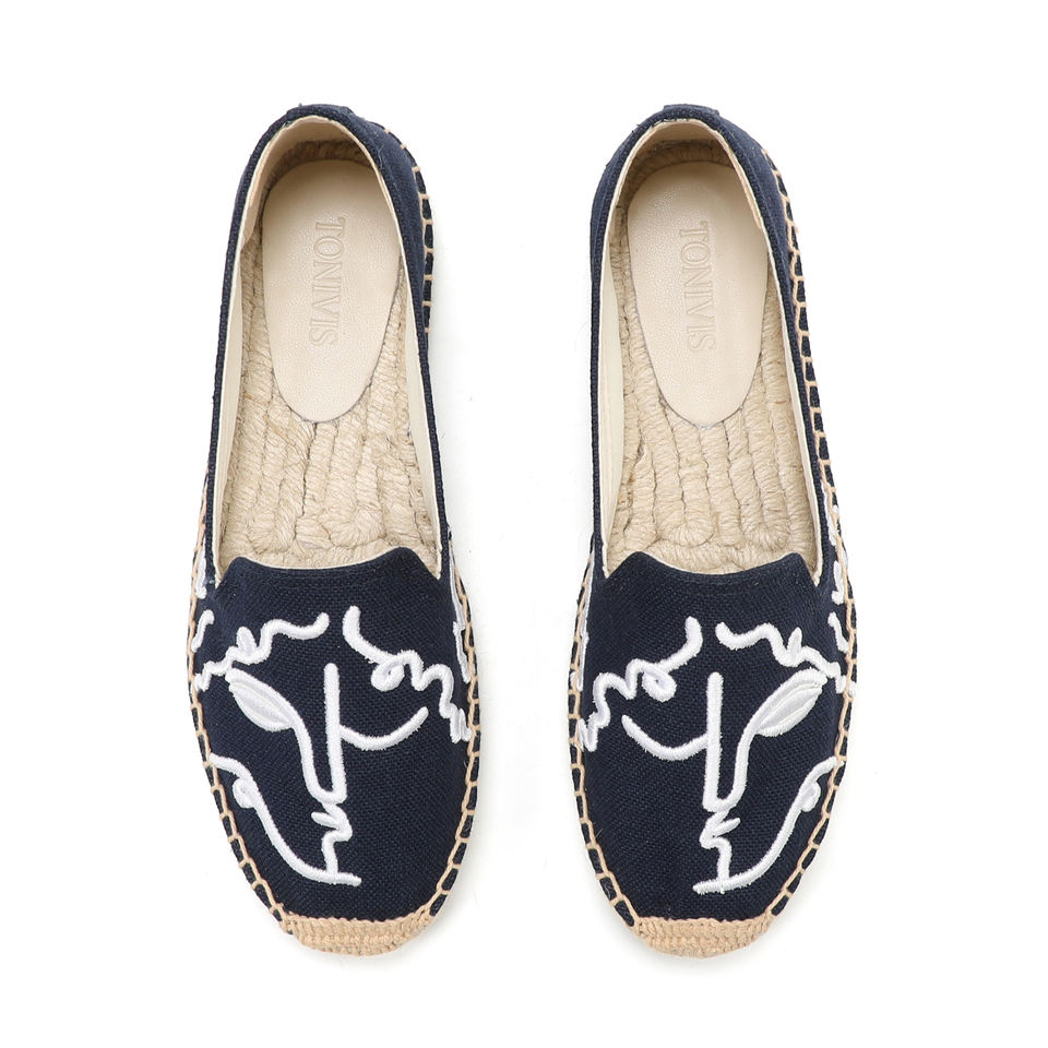 Nouvelles Espadrilles Plates Brodéées pour Femmes, Style Tendance, Haute Qualité, Durables, à Talon Haut, Fermeture Facile à Enfiler, OEM ODM