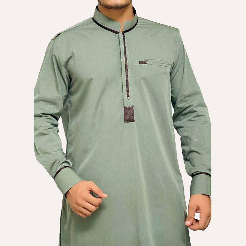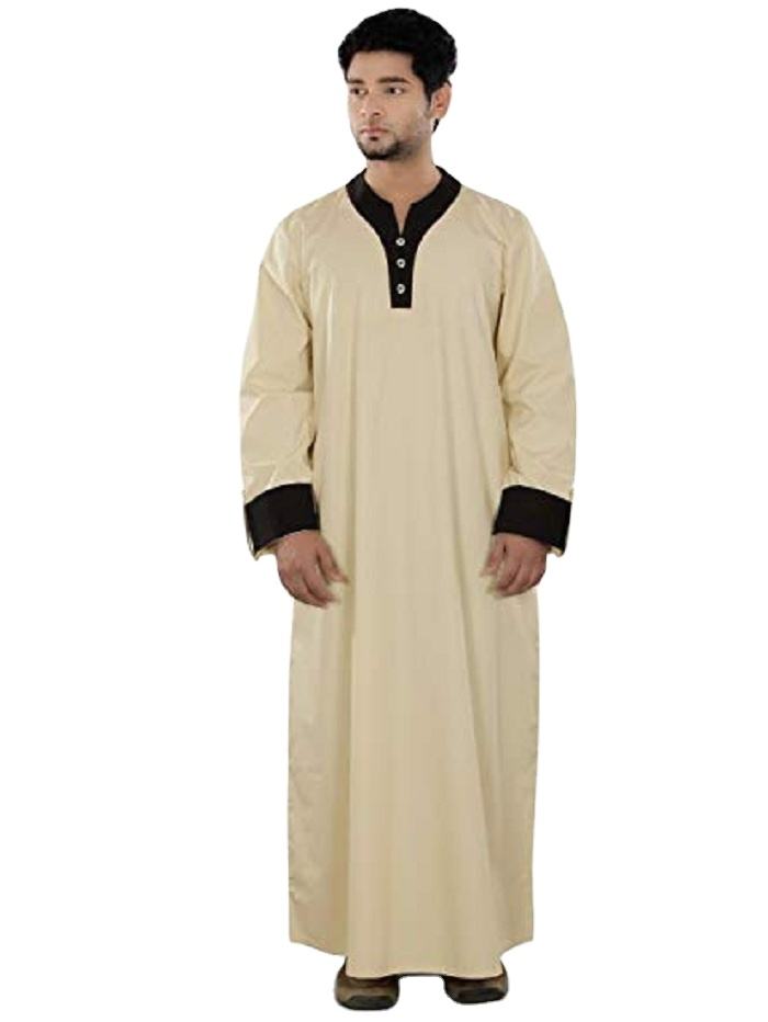 Vente chaude Nouveau Style Hommes Thobe Couleur Unie Manches Longues Casual Polyester Col Robe pour les Musulmans pour les Pratiques Islamiques