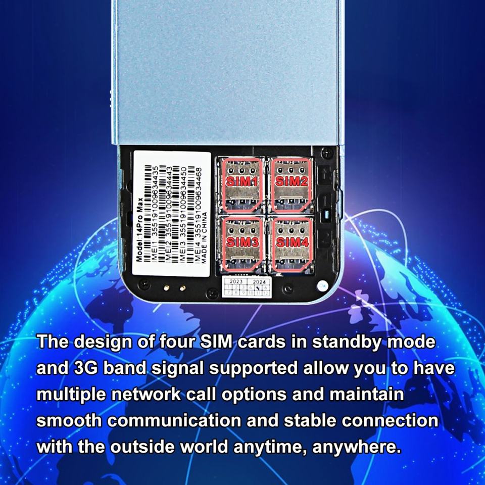Clavier QWERTY, SDK disponible, Sos, TORCHE, Radio FM, lecteur MP3, lecteur MP4, GPRS, 4 SIM carte Quad SIM