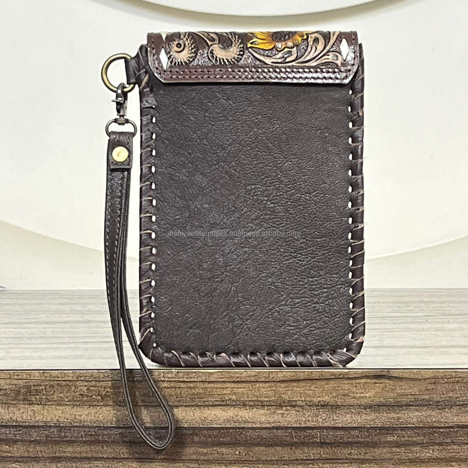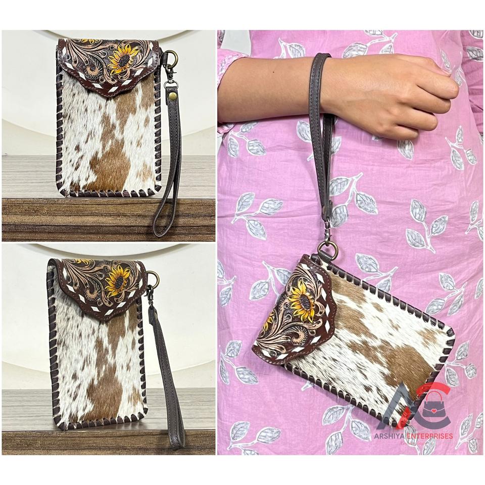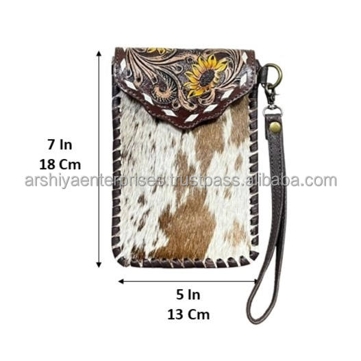 Sac à main en cuir de vachette artisanal style western, nouveauté très demandée, avec dragonne tournesol, pochette de téléphone rustique bohème à porter en bandoulière