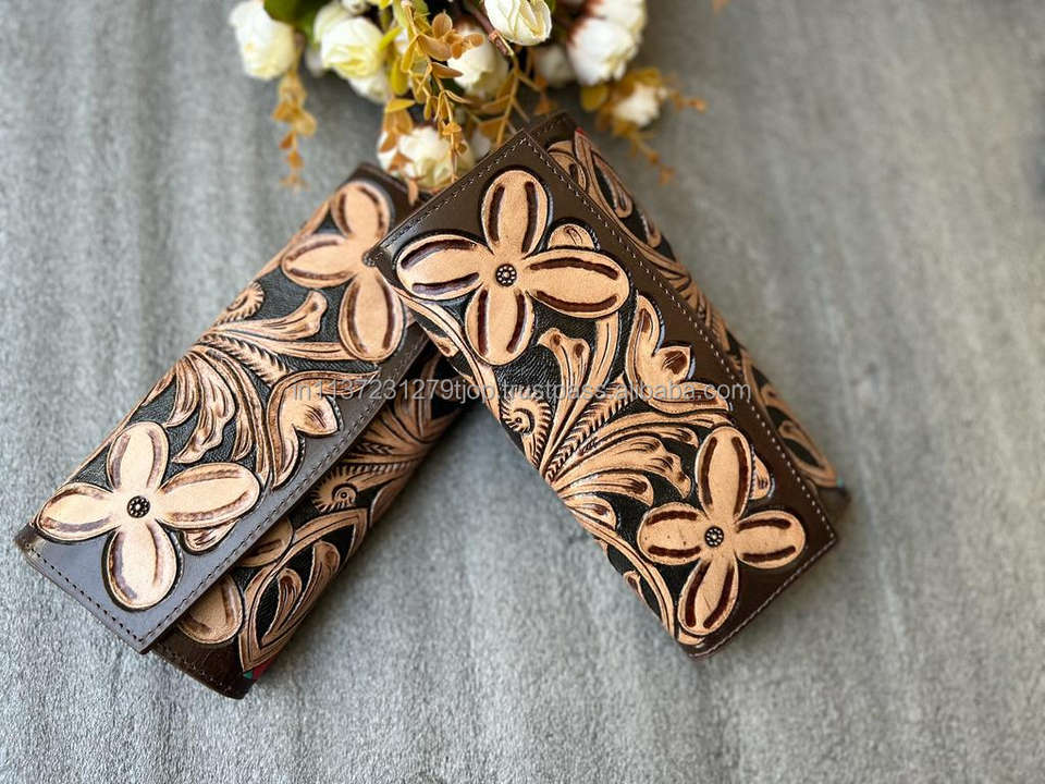 Aztec Tooled Leather Handbag &Tooled Clutch Combo Set