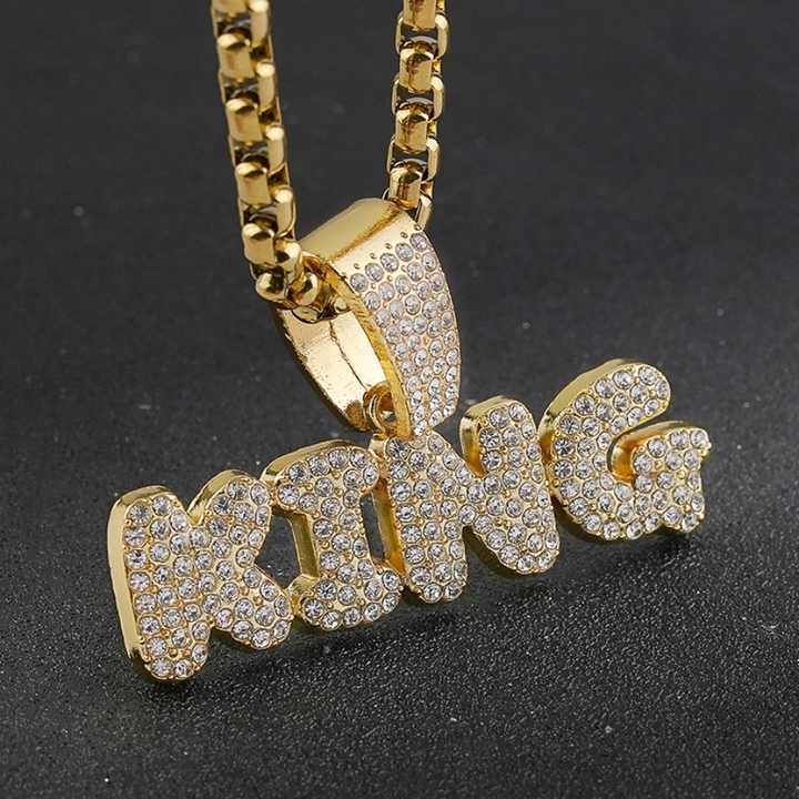 Collier Pendentif Lettre Roi en Strass, Style Hip Hop Punk, Bijou Femme, avec Diamants et Cristaux Sertis, Vente Chaude OEM