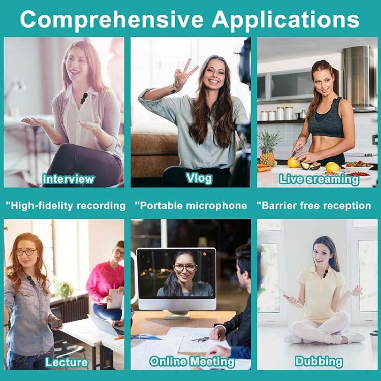 Vente chaude Microphone de réduction de bruit sans fil Lavalier un par deux pour téléphone/appareil photo/ordinateur portable/tablette avec récepteur 3.5mm