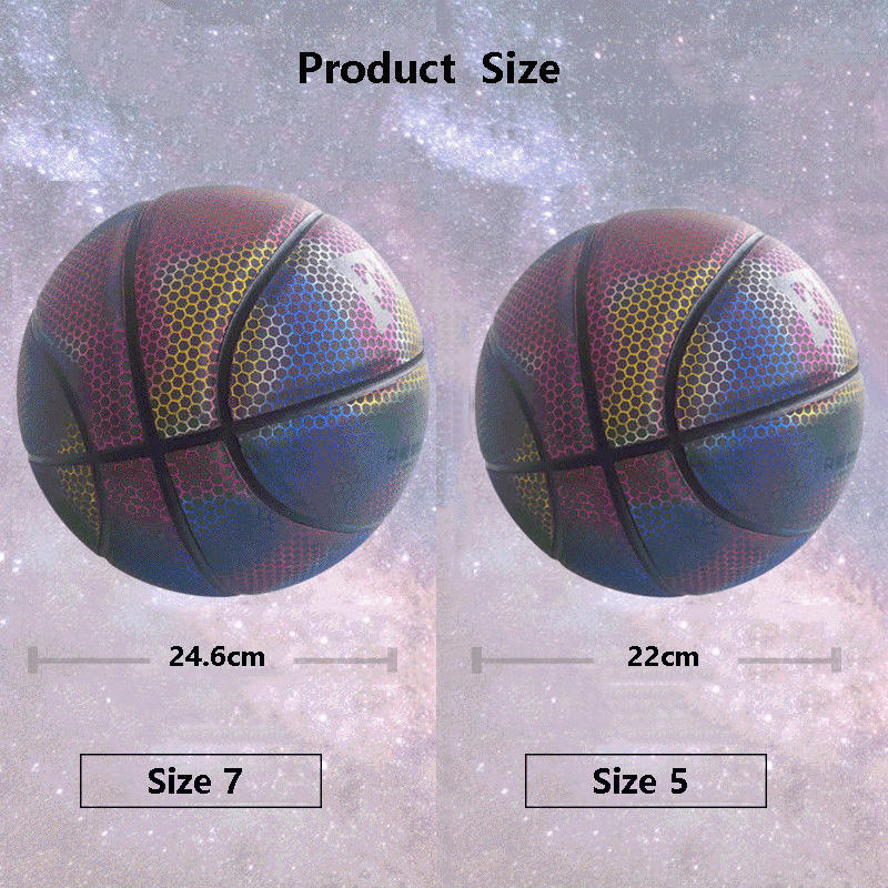 Ballon de basketball réfléchissant en PU, lumineux, taille 7 et taille 5, pour extérieur et intérieur, cadeau idéal