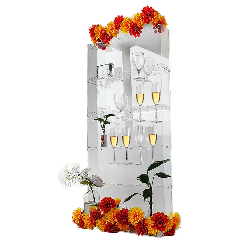 Vente chaude décorations de fête blanc rond déco PVC verre à vin présentoir acrylique champagne mur pour événement de mariage