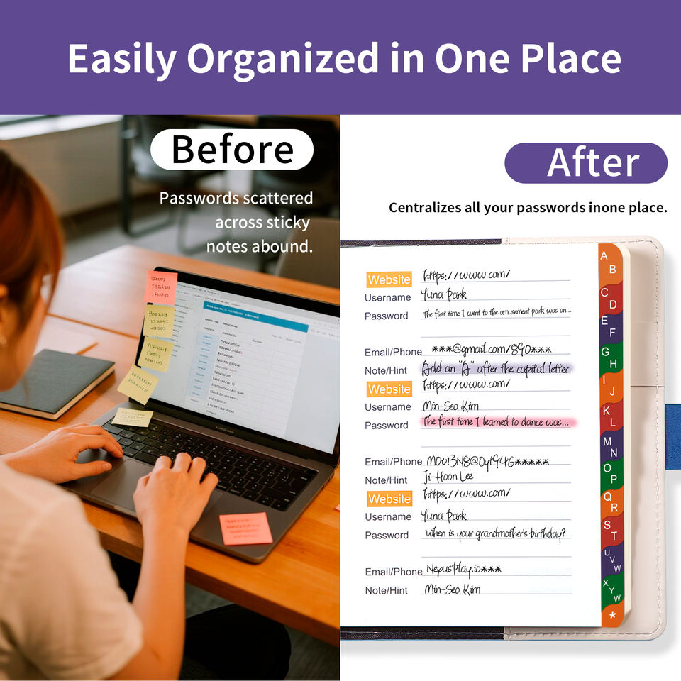 Carnet de mots de passe à succès avec onglets alphabétiques, carnet de rangement de mots de passe à couverture rigide, livre de connexion aux sites web, carnet de verrouillage de mots de passe