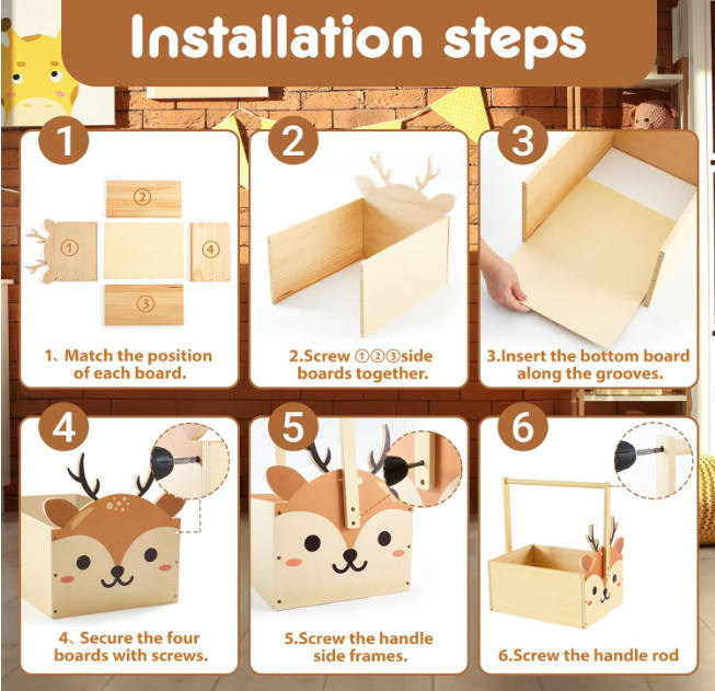 Panier Cadeau Bébé en Bois à Assemblage Facile, Motif Cerf Mignon, Idéal pour la Crèche et la Chambre, Cadeau de Naissance Personnalisé, Vente Chaude