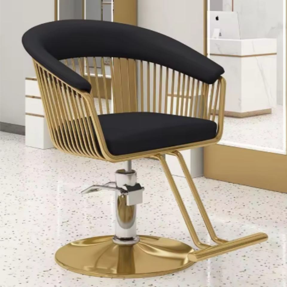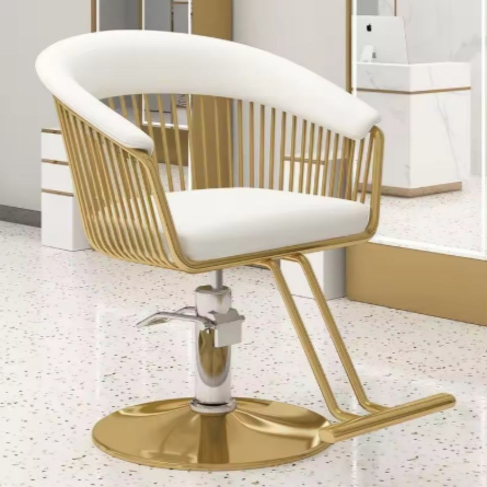 Chaise de coiffure en cuir PU rose à capitonnage, base ronde dorée, chaise de salon de coiffure pour femme, vente chaude