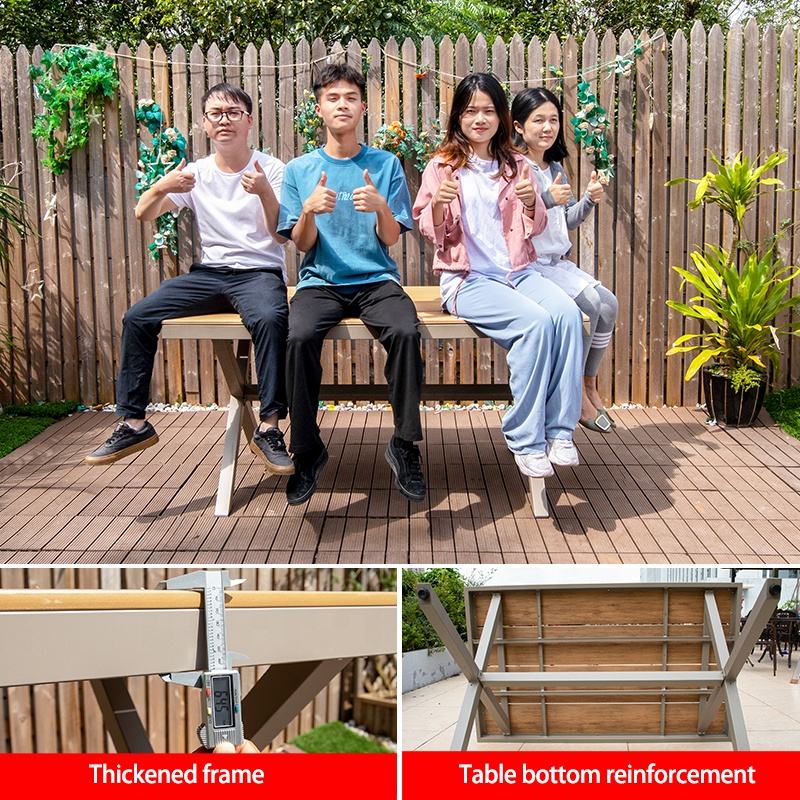 Offre spéciale Table de table d'extérieur en bois plastique Mobilier en aluminium Ensemble hôtel villa patio arrière-cour table à manger et chaises