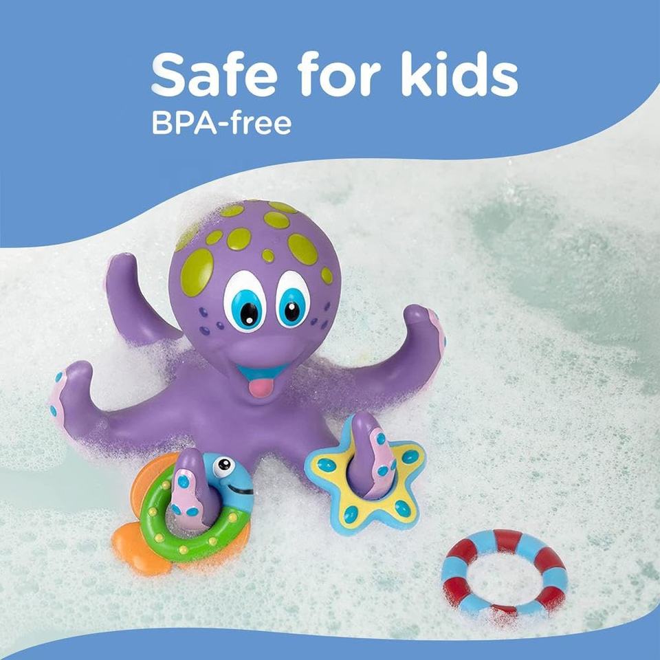 Vente chaude jouant à l'eau jouets flottant poulpe violet avec 5 pièces Hoopla anneaux jouet de bain interactif pour les tout-petits