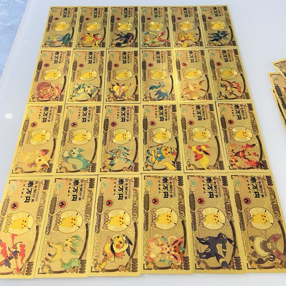 Billets de collection Pokémon très demandés – Monnaies fantaisie d'anime japonais – Souvenirs pour fans d'anime – Billets Pokémon en feuille d'or