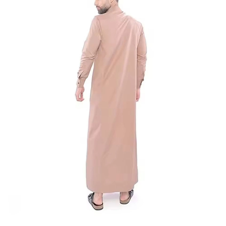 Vente chaude Polyester col montant couleur unie à manches longues Thobe hommes musulmans robe vêtements islamiques pour hommes Thobe