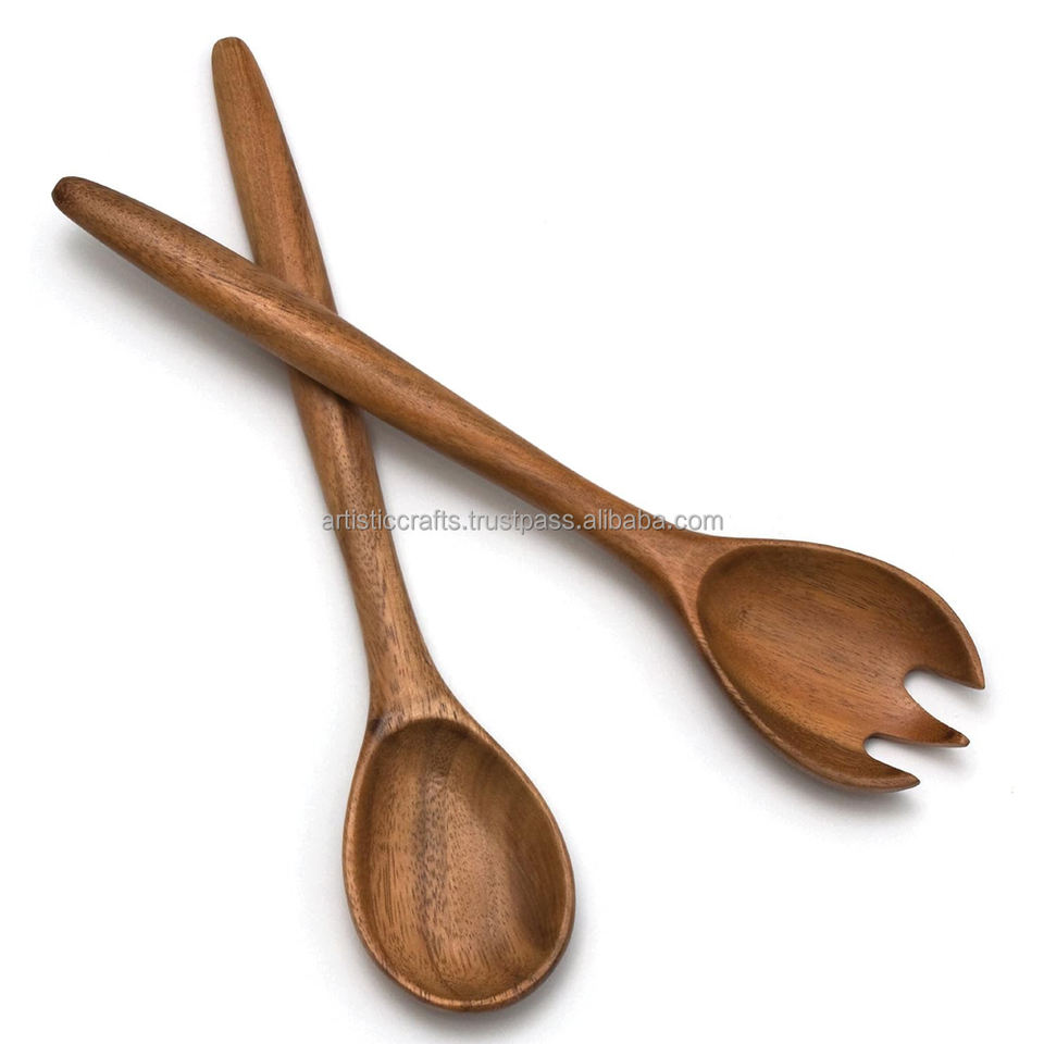 Vente chaude Acacia Bois Salade Serveur Ensemble Long Manche Écologique En Bois Ustensiles De Service Style Populaire En Bois Salade Outils