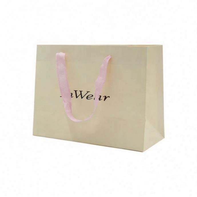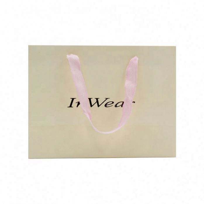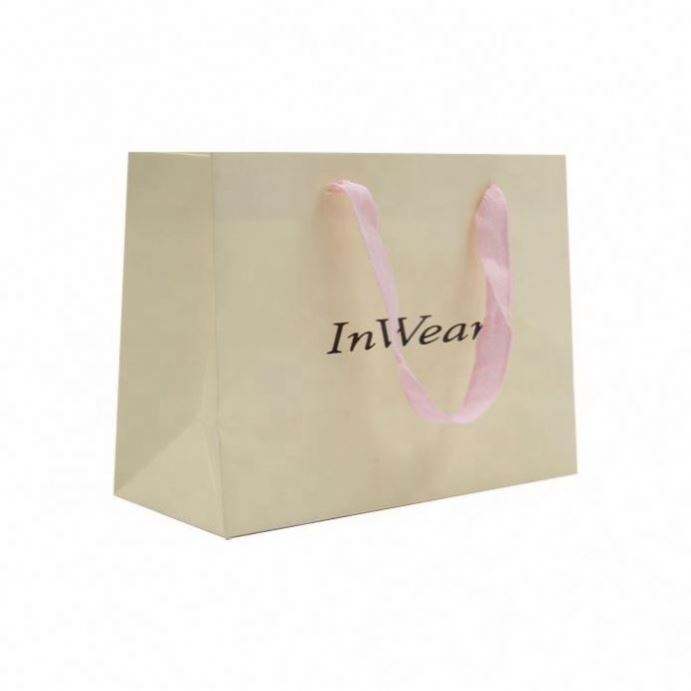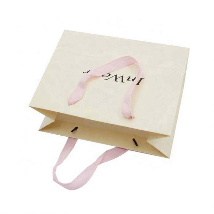 Sacs en papier portables à succès avec poignée en ruban, personnalisables avec logo pour promotions