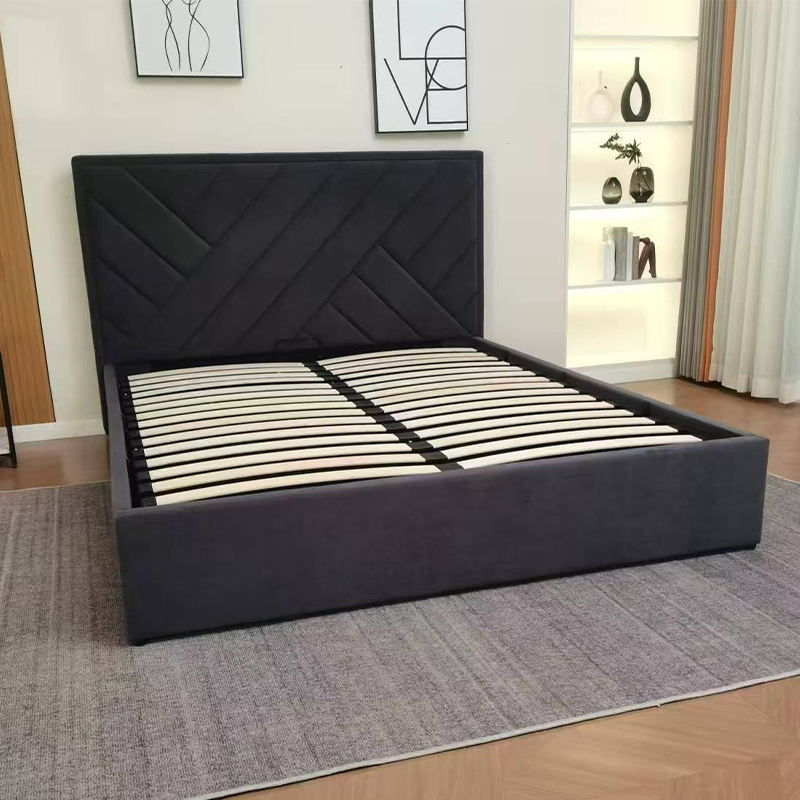 Lit double king size en bois au design postmoderne, collection de meubles de chambre à coucher la plus récente, rembourré en tissu, vente chaude