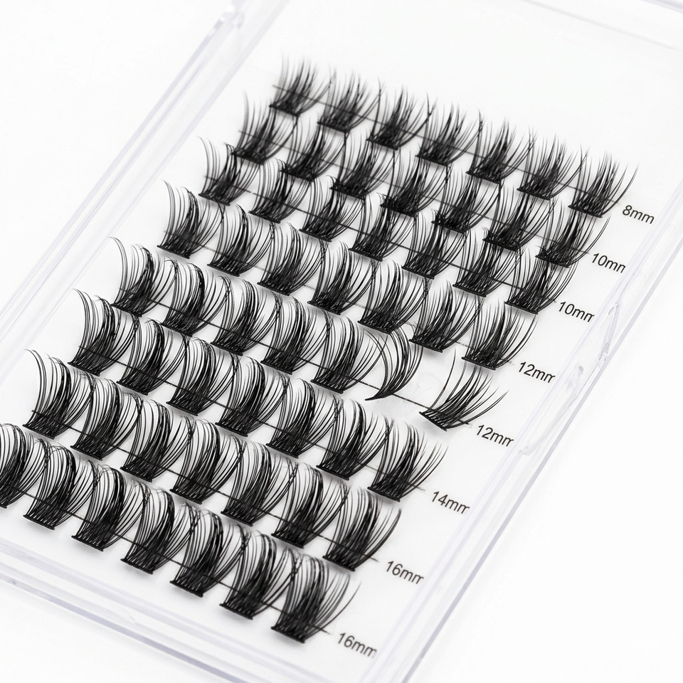 Cils en grappe pré-coupés DIY 12mm 14mm, bande plus fine, sans cruauté animale, OEM ODM, 3D, noir mat intense, vente chaude