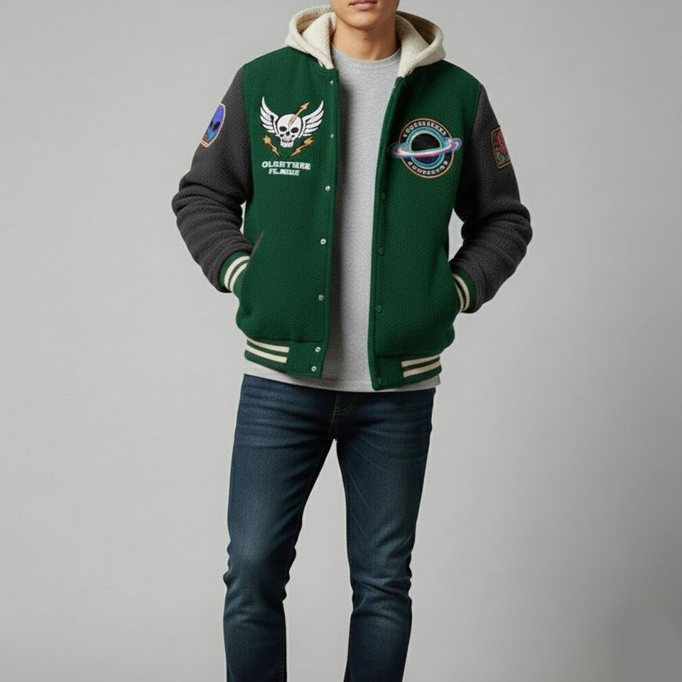 Product Name:Men Fleece Varsity Jacket
