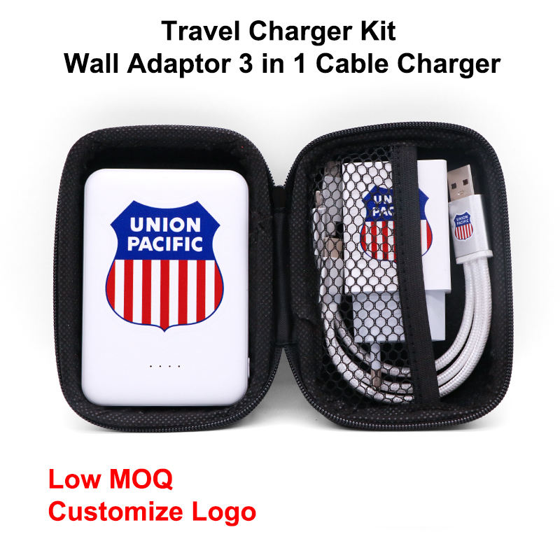 Offre spéciale, coffret cadeau promotionnel avec logo personnalisé, kit de voyage d'affaires, banque d'alimentation 3 en 1, câble USB, adaptateur chargeur pour voyage en plein air
