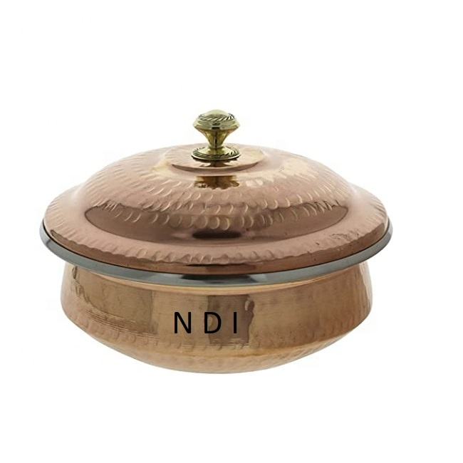Vente chaude pur cuivre métal conception marmite serveur de nourriture chaude gravée à la main concepteur de service de nourriture marmite arrondie pour Restaurant