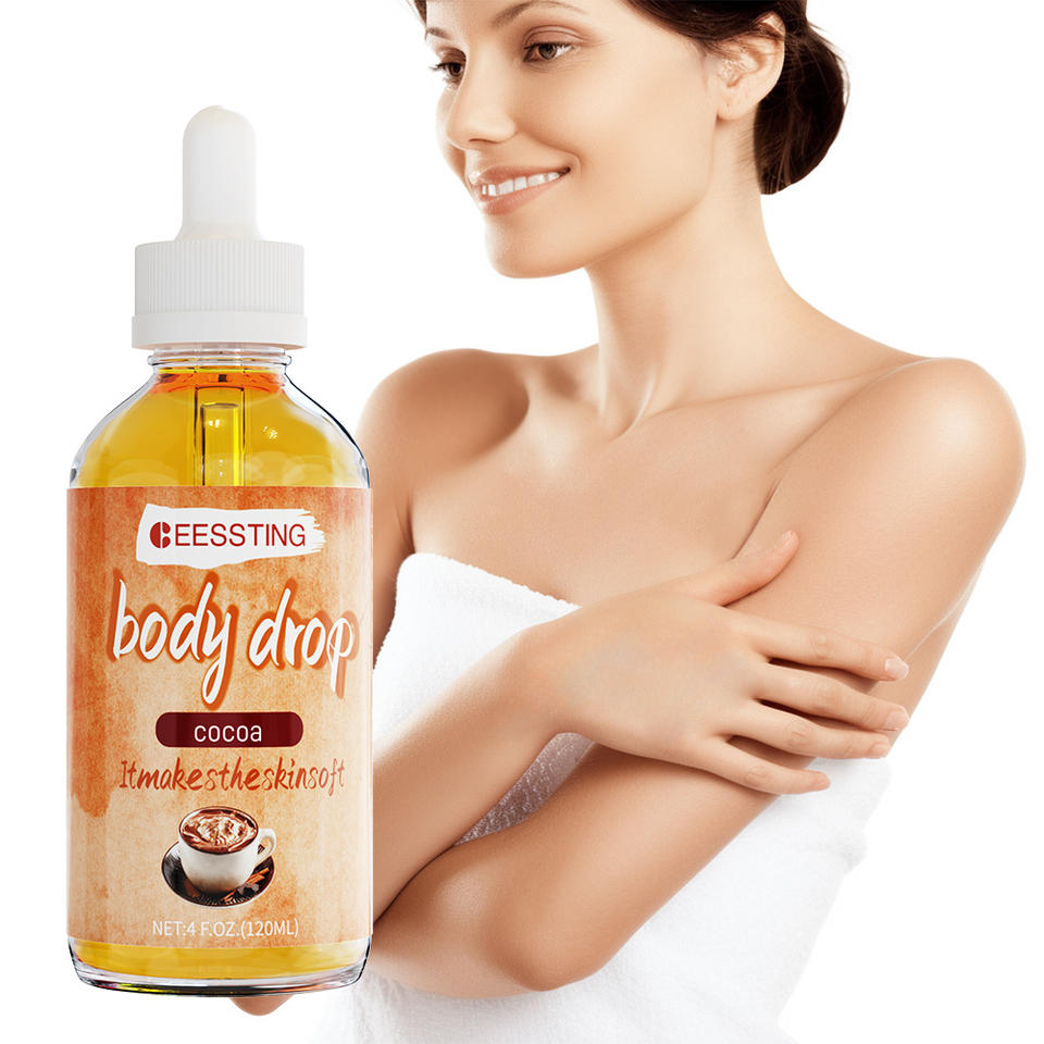 Vente chaude Ingrédients Végétaux Cacao Éclaircissant Hydratant En Profondeur Gouttes Corporelles Fabriquées À La Main Huile Essentielle De Massage pour Peau Normale