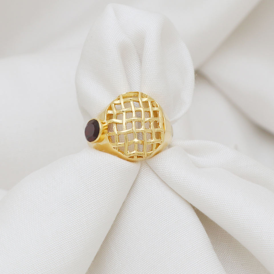 Bague solitaire en argent avec grenat rouge, fabrication artisanale, vente en gros, bijoux en pierres précieuses, plaqué or en laiton, tendance, fêtes, mariages