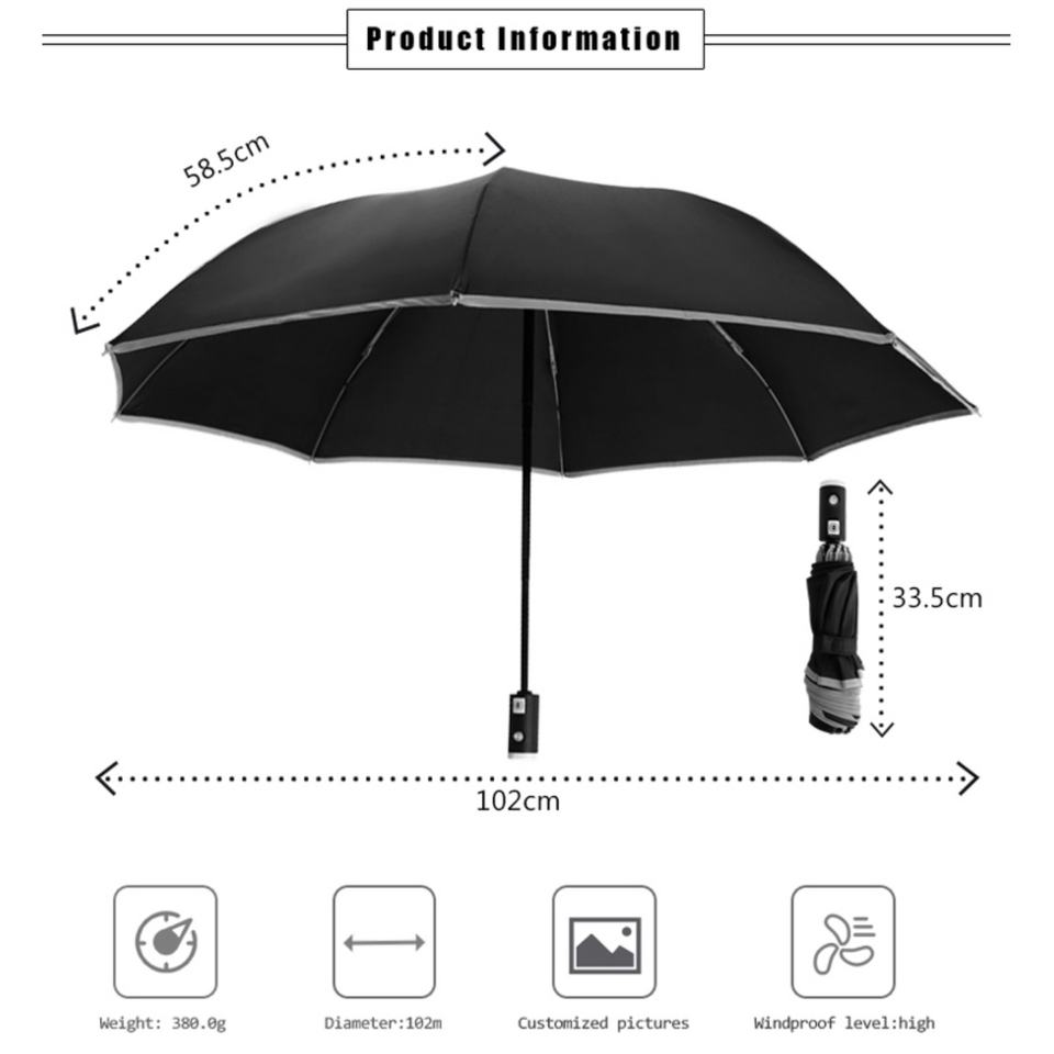 Parapluie pliant réfléchissant à LED, imperméable, avec sac de transport, idéal pour la sécurité nocturne – Vente Flash