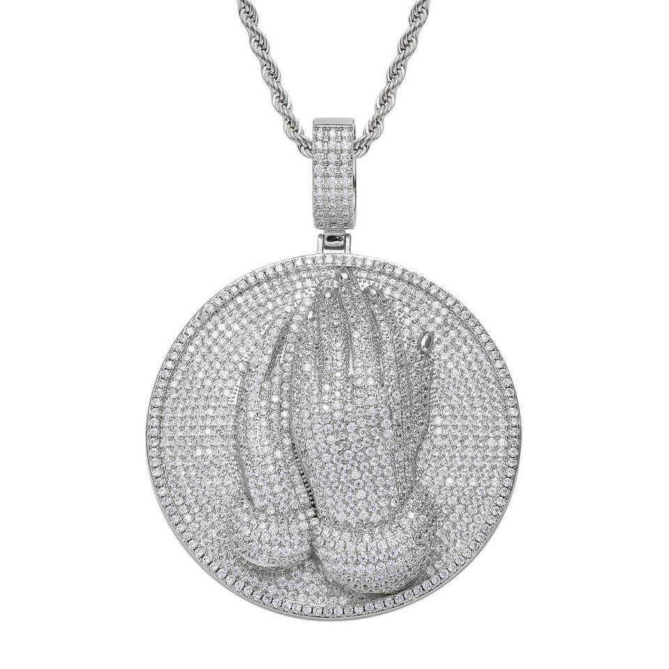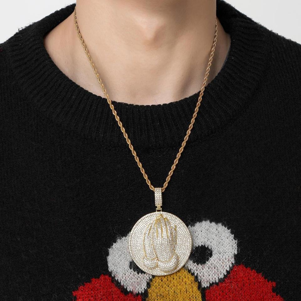 Collier pendentif mains en prière religieuses, plaqué or, style hip-hop, avec diamants et chaîne torsadée – Cadeau idéal – Meilleures ventes