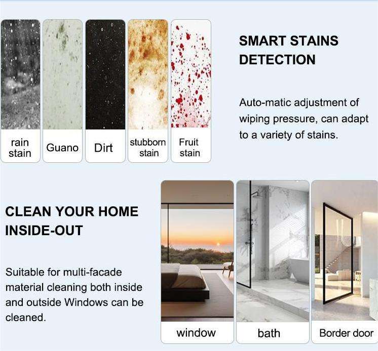 Nettoyage de fenêtres résidentiel à navigation intelligente, triple anti-chute, meilleures performances de nettoyage, nettoyage de fenêtres en hauteur, vente chaude