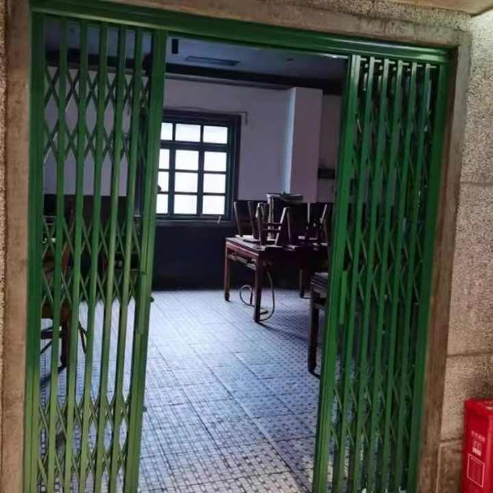 Porte coulissante de magasin en acier inoxydable rétro décorative à vente chaude, porte pliante harmonieuse en fer plat