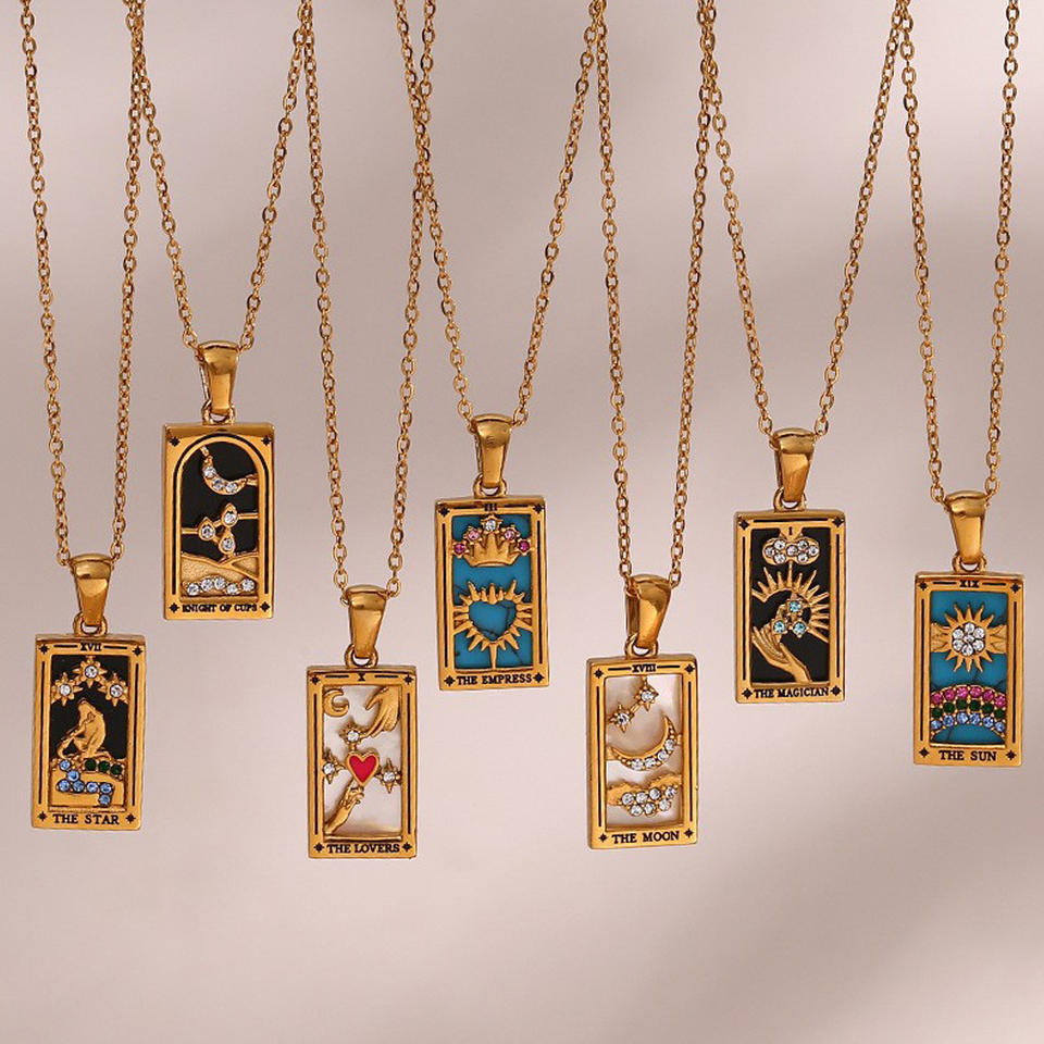 Vente chaude Rétro Vintage Style En Acier Inoxydable Cristal Pendentif Collier Populaire Dégoulinant D'huile Zircon Tarot Bijoux Lune Forme