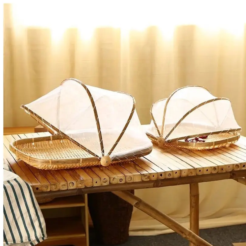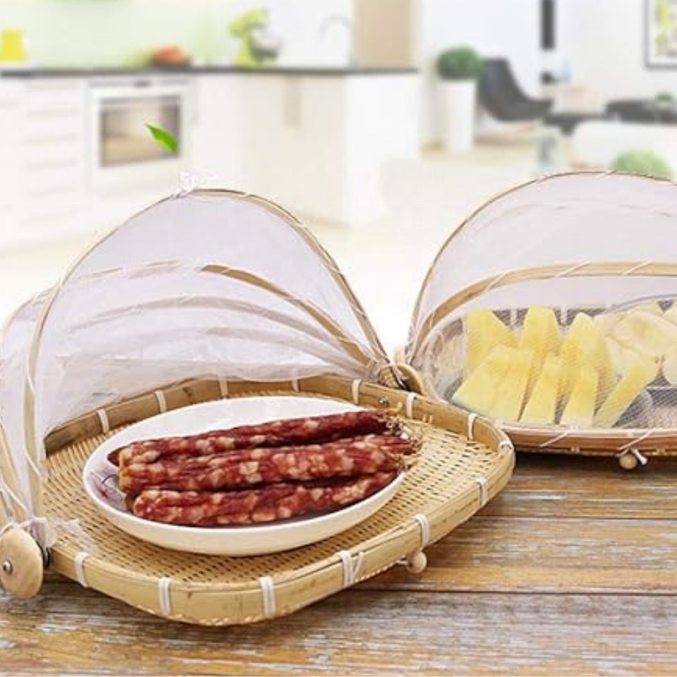 Plateau de service rond en bambou réutilisable, anti-poussière et anti-mouches, pour la cuisine, Vecraft VC-904, produit très vendu