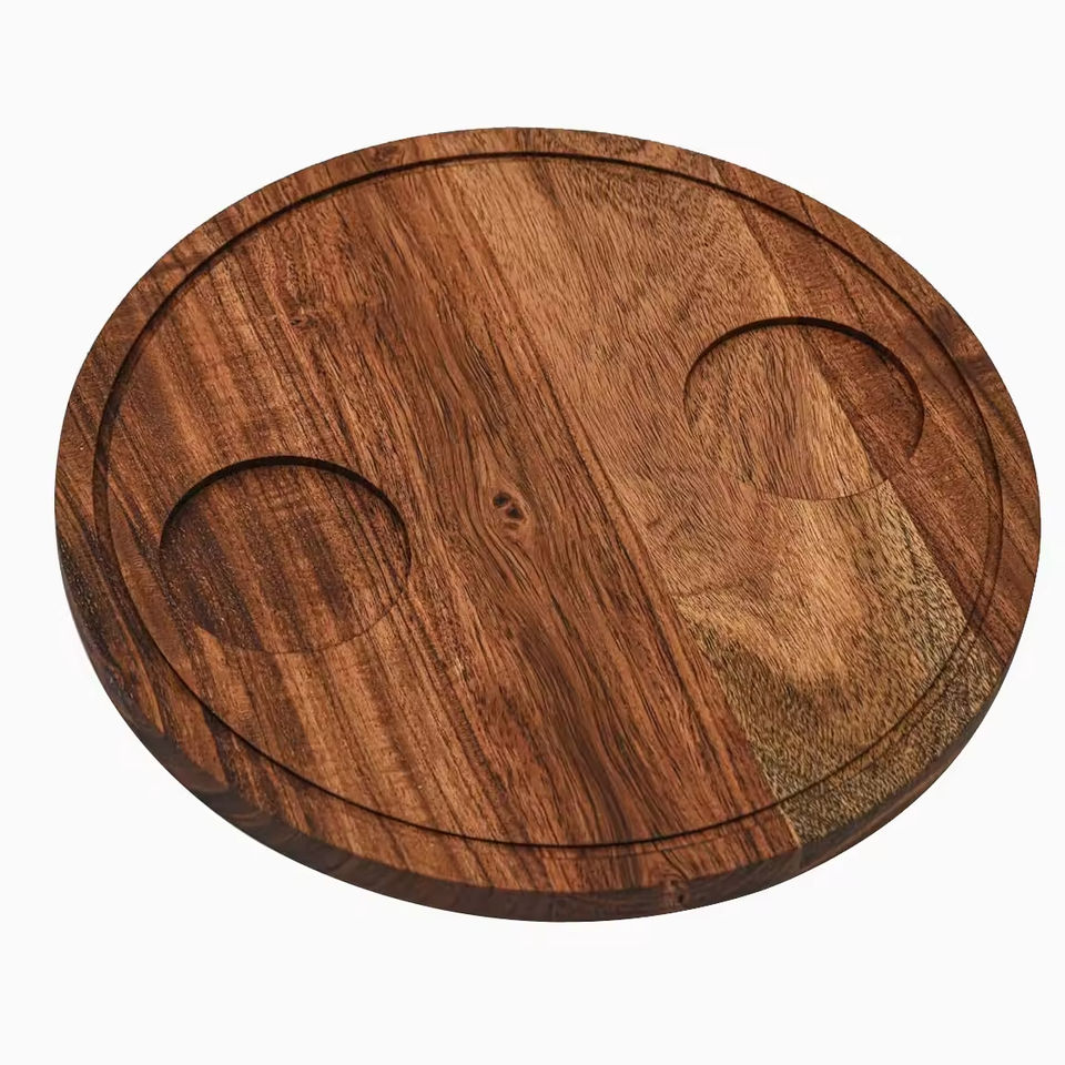 Vente chaude Forme Ronde Plateau En Bois Massif Couleur Marron Maison Vaisselle Ustensiles De Cuisine Design Moderne Plateau De Service Alimentaire