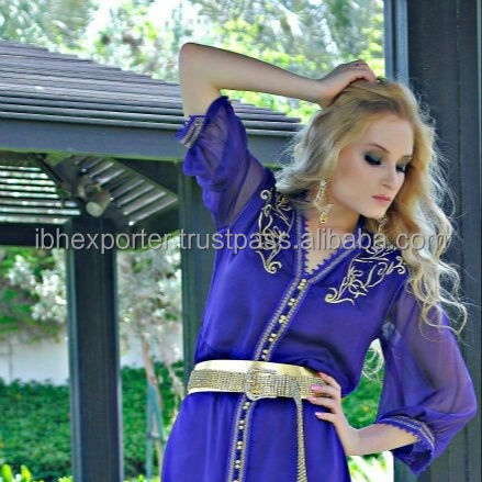 Hot Selling Royal Blue Moroccan Kaftan Abaya Outing Party Long Muslim Dress Belt With Embroidery