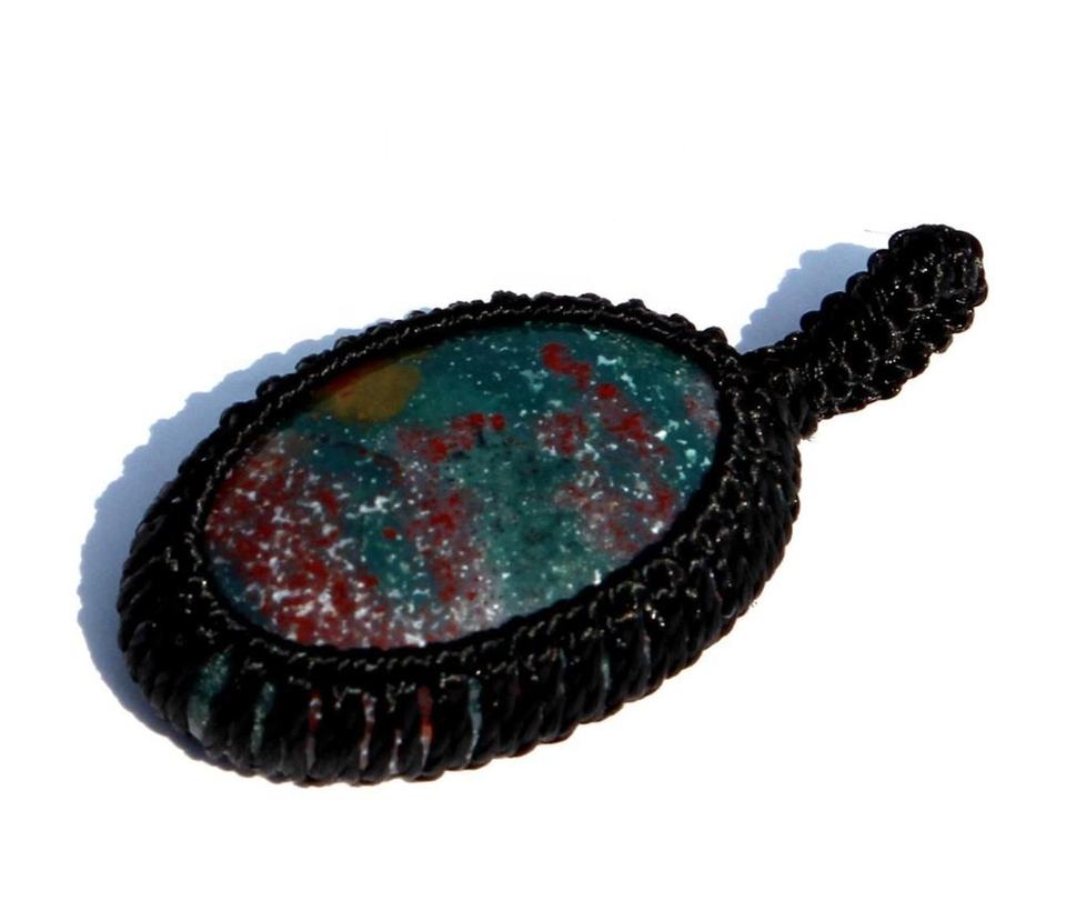 Vente chaude Rudra Gems Bohème Fabriqué À La Main Ovale Enveloppé Cabochon Gemstone Pendentif Bloodstone Macramé Cordon Certifié Bijoux