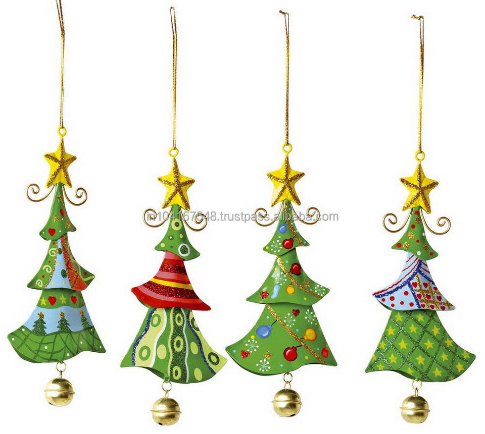 Décorations de Noël rustiques et festives très vendues, ornements en métal de haute qualité faits à la main en forme de cloche suspendue, ruban de couleur pleine
