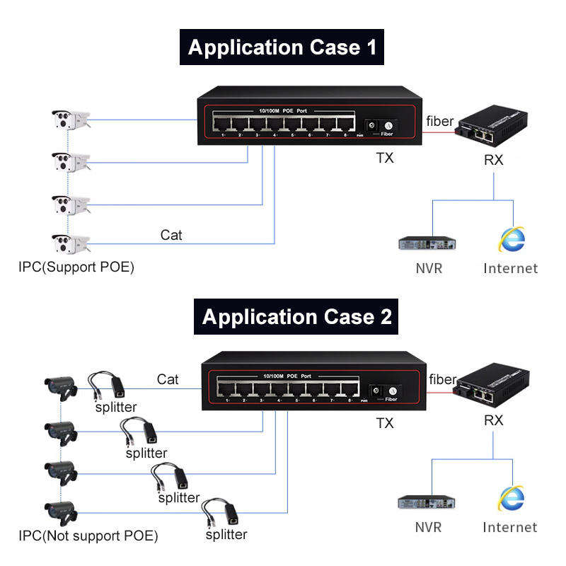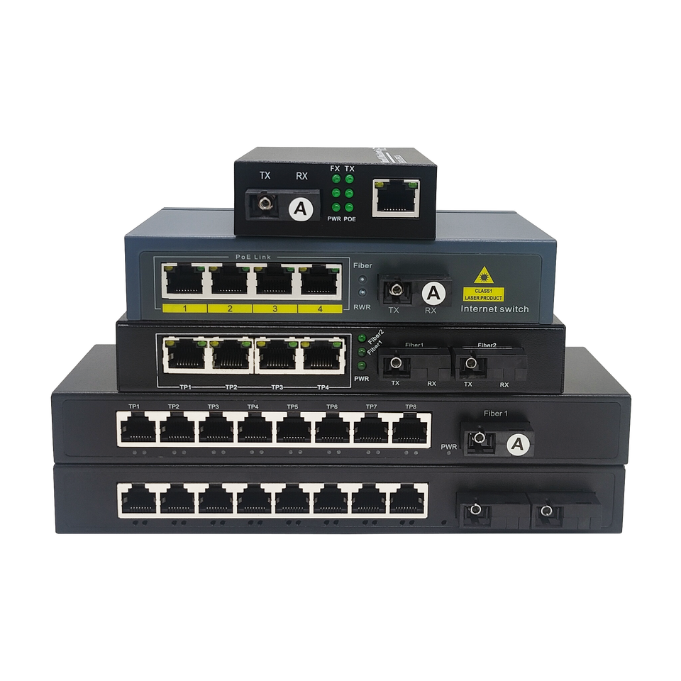 Convertisseur de média SC à succès – Switch Ethernet 10/100M, 20KM, 1 SC + 4 RJ45, Switch PoE à fibre optique, Convertisseur de média réseau fibre optique