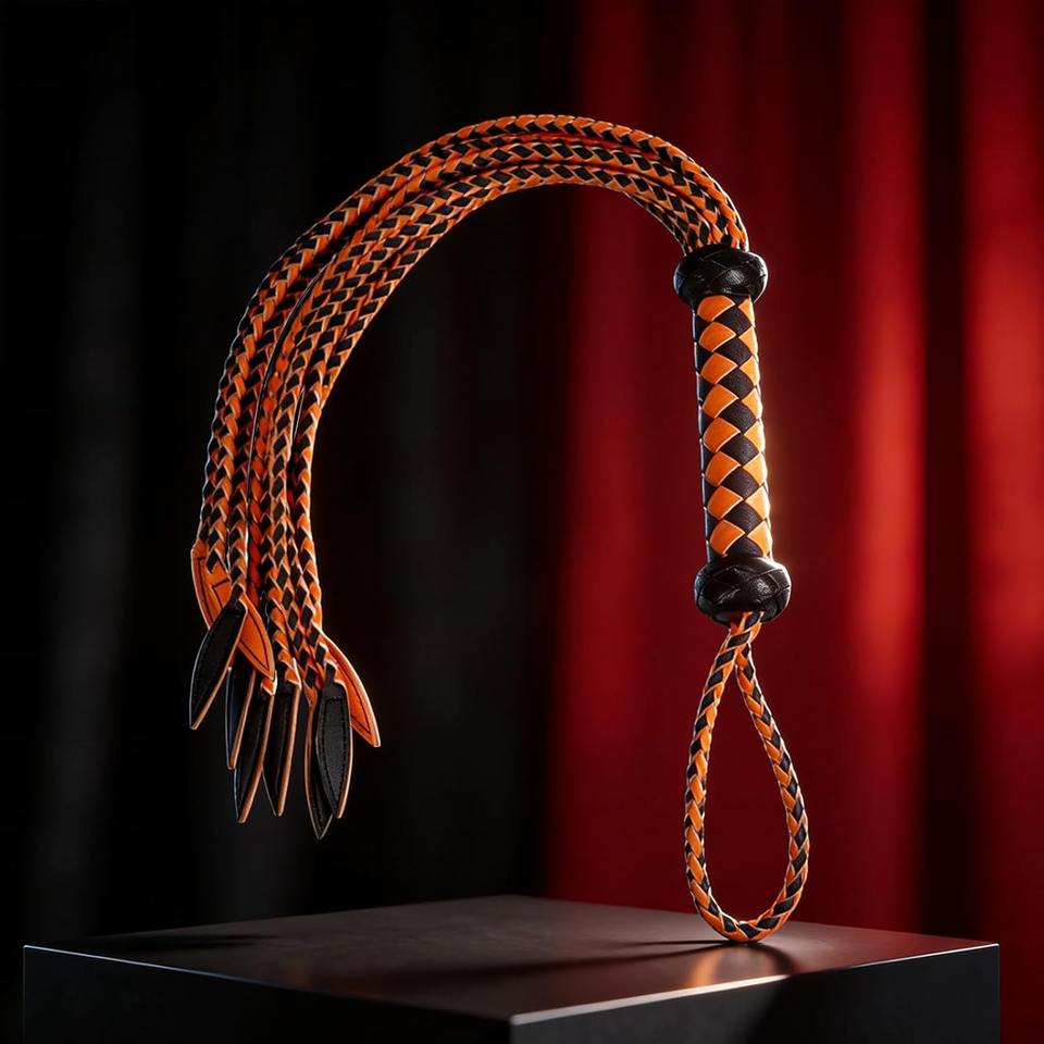 Vente chaude : Fouet et lances de bondage SPALL JP SPORTS SJS-HF-0024 en cuir véritable sur mesure, couleur orange, BDSM, à prix réduit