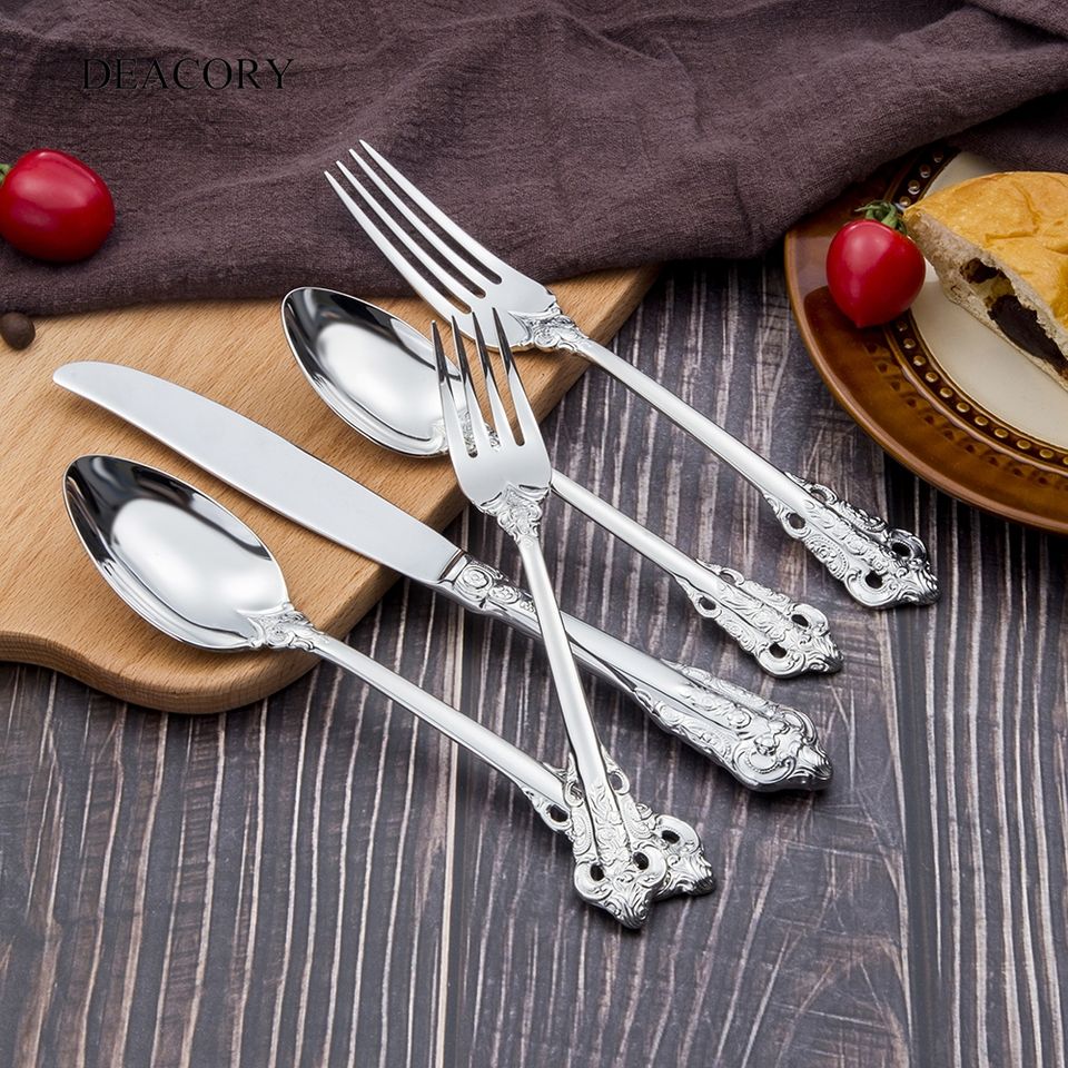 Vente chaude couleur argent 5 pièces ensemble de couverts en acier inoxydable pour mariage de luxe