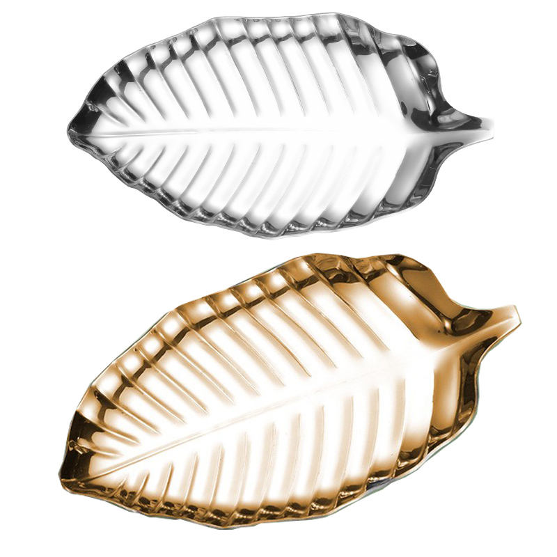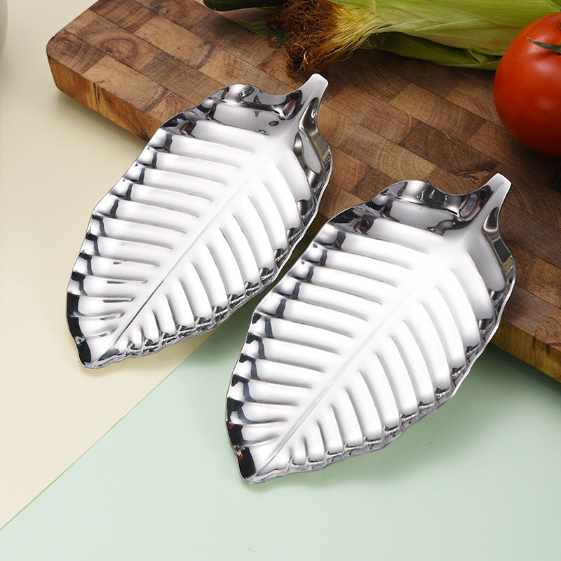 Assiettes à fruits en forme de feuille d'argent de Style européen, plateau à fruits de Restaurant en vrac bon marché, assiettes à dîner nordiques en acier inoxydable en vrac