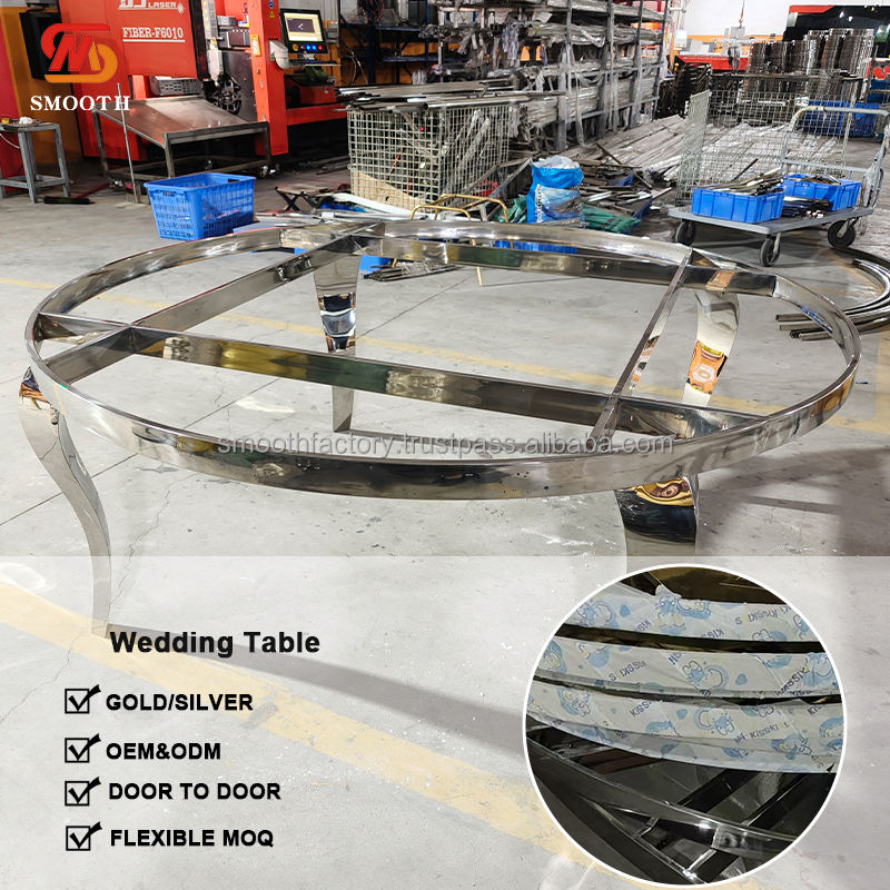 Table en acier inoxydable argenté à vendre, design moderne, cadre en métal pour table de mariage, table de réception pour hôtels et restaurants