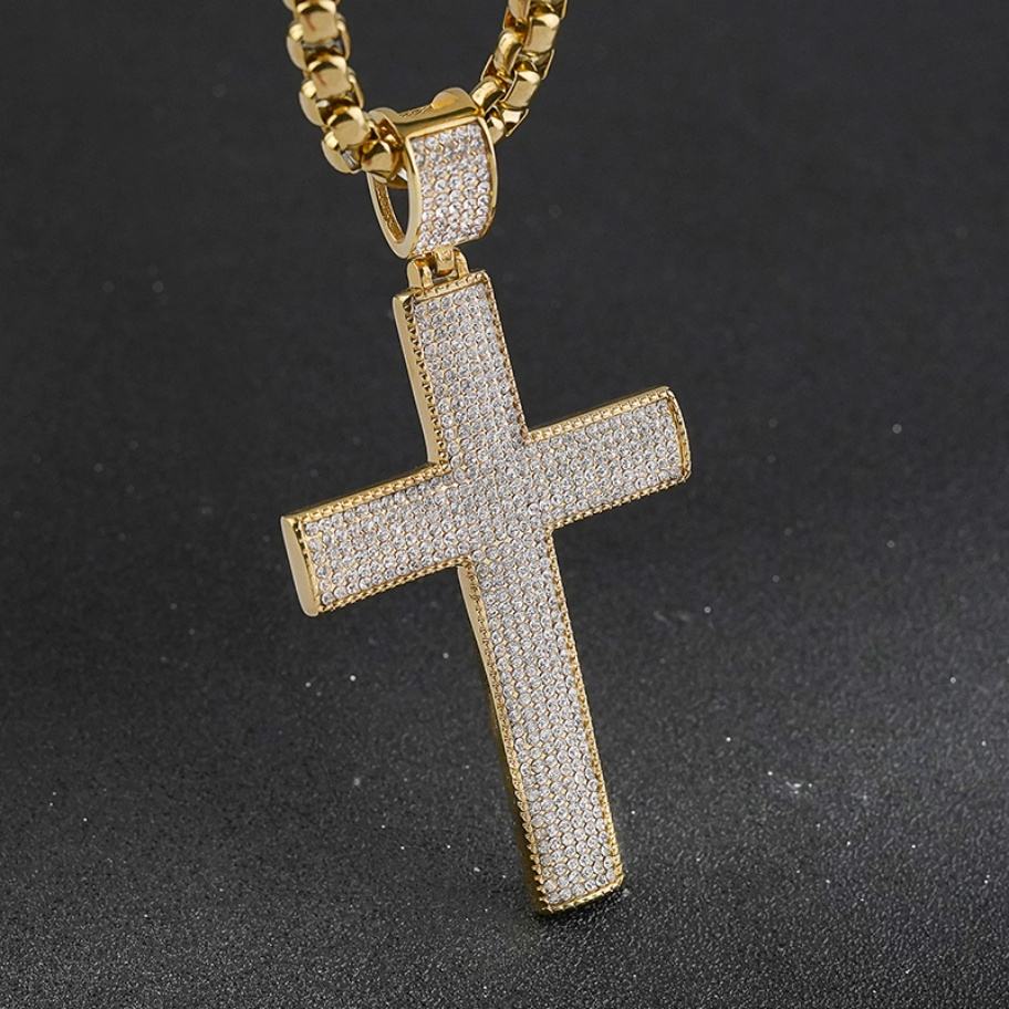 Collier Croix de Jésus Bling Bling Micro-Pavé CZ, Bijou Rap Simple et Tendance, Vente Chaude