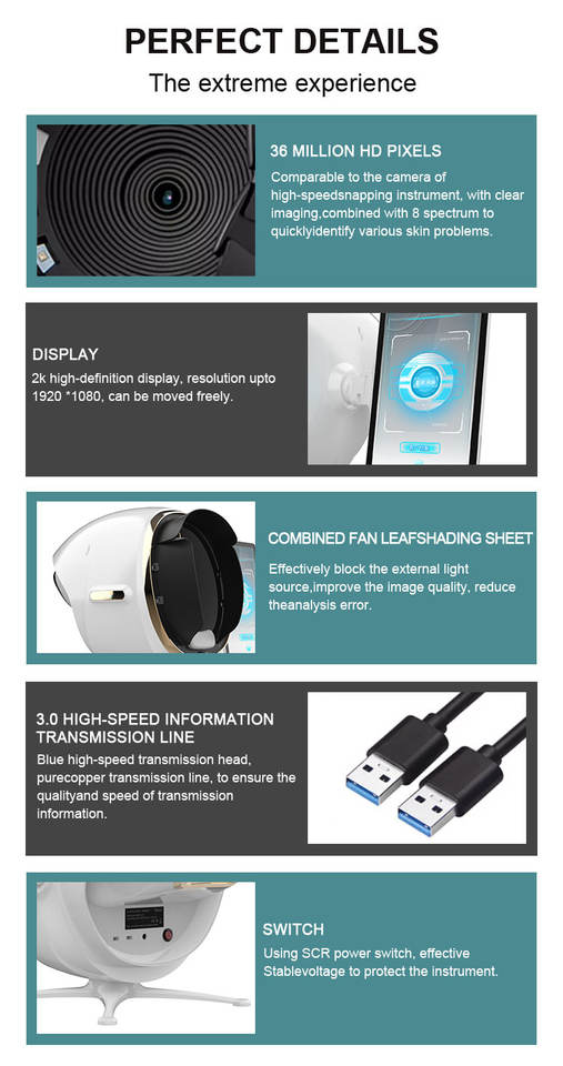 D'acné analyse, Pigmentation analyse, Peau analyse des Rides, Détecter L'humidité de La Peau, Hydrater
